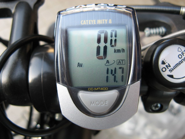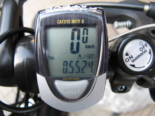 前回44.0km/h出した時は、全くこがないで、ブレーキも無しで下ったのですが、今回はギアを最高段である18にセットし、一生懸命こぎました。すると、全長300メートルほど(目分量)の坂の4分の1(目分量)まで降った時点で、既に40km/hを越えました!後は、降るに任せていたら、いつの間にか50km/hを越えていたと言うことです。