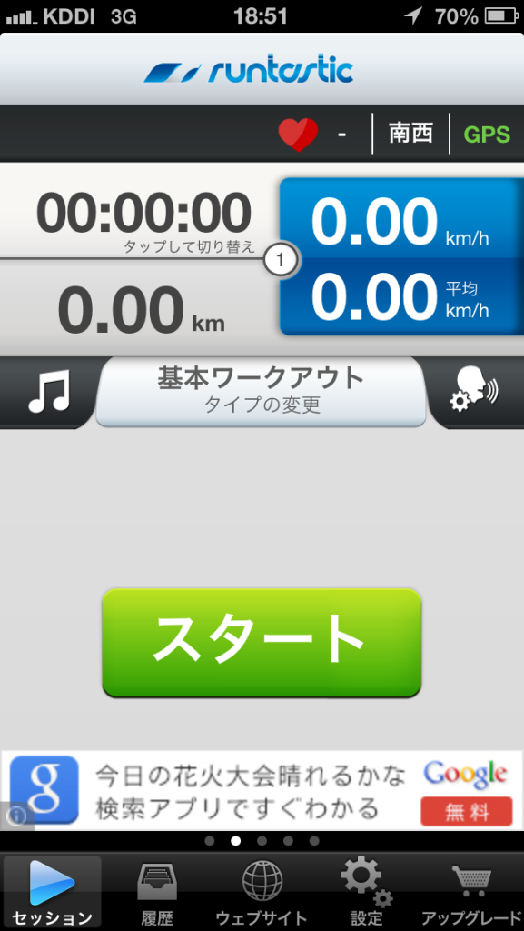 運動部に入ったわけではないので、運動不足…。というわけで、続く限りジョギングをしようと思った。そこでこのアプリがいろんな情報を提供してくれるわけだ。