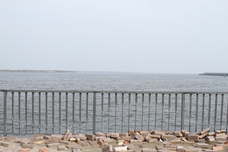 まだ歩道には打ち上げられた砂があって、途中途中ハンドルを取られながら、かばんに入っているカメラ3台(コンデジ、フィルム一眼、デジタル一眼)のことを思って慎重に行きました。