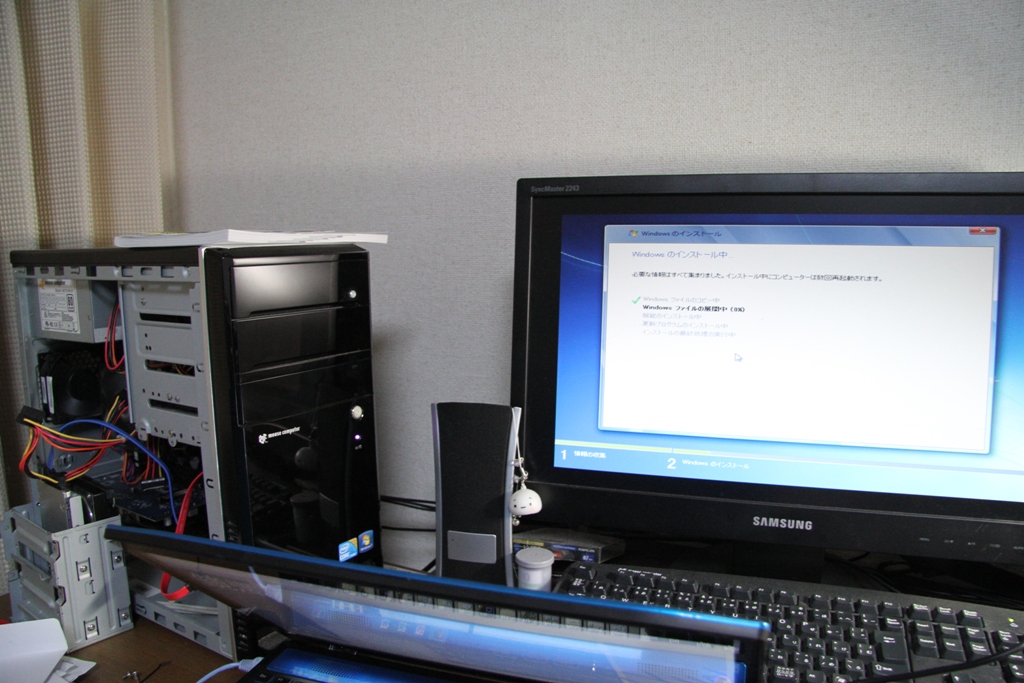 既存のHDDはとりあえず繋げず、この状態でSSDにWindows7をインストール。