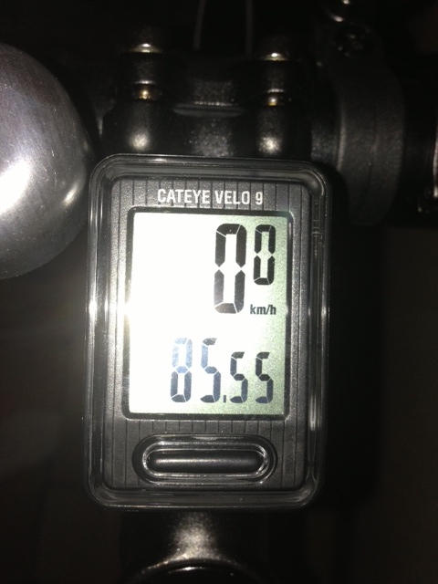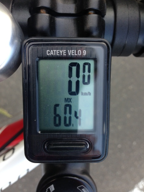 あのマウンテンルックバイクでは57km/hが限界って感じだったけど、こっちではもうちょっと頑張ればもっと出せそう。